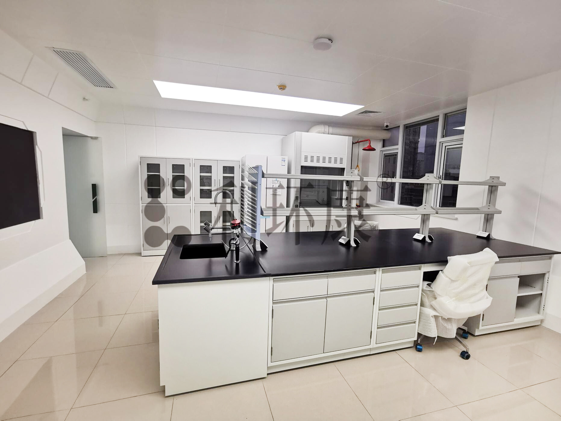 全钢实验台,水槽台,试剂架,通风柜,试剂柜,器皿柜,紧急喷淋。